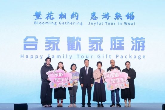 樱礼传温情,锡港共相依——文旅大礼包温情赠礼,无锡市人民政府市长蒋锋为获得“合家欢家庭游”大礼包的2组幸运家庭发放大礼包。